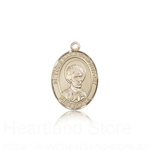 This St. Louis Marie De Montfort Pendant is made of 14 Karat Gold and is approximately the size of a nickel. The jewelry pendant is sold individually and does not come with a chain. All medals are gift boxed in a beautiful blue velvet hinged jewelry gift box.