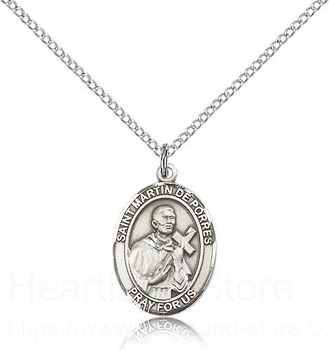 This St. Martin De Porres Pendant is made of sterling silver and is approximately the size of a nickel. The jewelry pendant is paired with an 18 inch sterling silver light curb chain as pictured. All medals are gift boxed in a beautiful blue velvet hinged jewelry gift box.