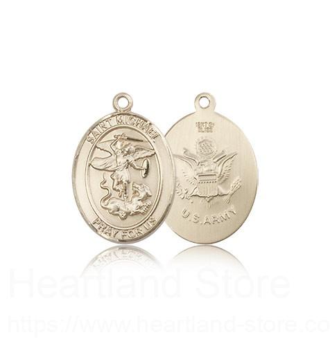 About this St. Michael Army Medal, 14 Karat Gold, Medium