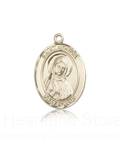 This St. Monica Pendant is made of 14 Karat Gold and is approximately the size of a quarter. The jewelry pendant is sold individually and does not come with a chain. All medals are gift boxed in a beautiful blue velvet hinged jewelry gift box.