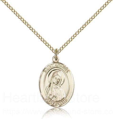 This St. Monica Pendant is made of gold filled and is approximately the size of a nickel. The jewelry pendant is paired with an 18 inch gold filled light curb chain as pictured. All medals are gift boxed in a beautiful blue velvet hinged jewelry gift box.