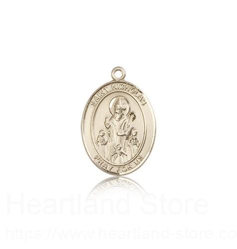 This St. Nicholas Pendant is made of 14 Karat Gold and is approximately the size of a nickel. The jewelry pendant is sold individually and does not come with a chain. All medals are gift boxed in a beautiful blue velvet hinged jewelry gift box.