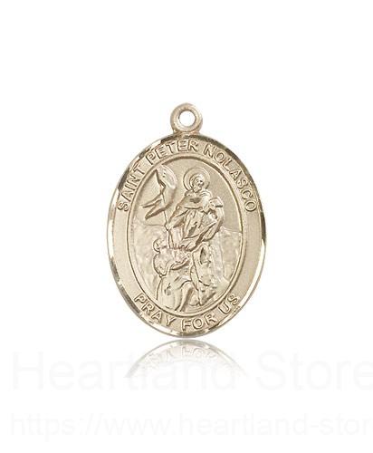 This St. Peter Nolasco Pendant is made of 14 Karat Gold and is approximately the size of a quarter. The jewelry pendant is sold individually and does not come with a chain. All medals are gift boxed in a beautiful blue velvet hinged jewelry gift box.