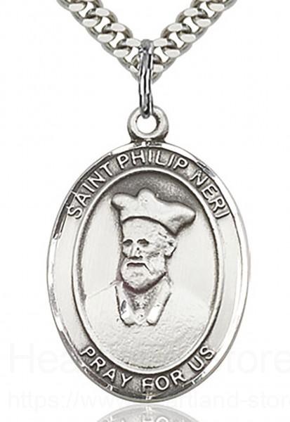 About this St. Philip Neri Medal, Sterling Silver, Large + 24" 2.4mm Rhodium Plate Chain + Clasp
