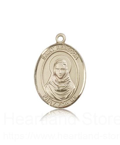 This St. Rebecca Pendant is made of 14 Karat Gold and is approximately the size of a quarter. The jewelry pendant is sold individually and does not come with a chain. All medals are gift boxed in a beautiful blue velvet hinged jewelry gift box.