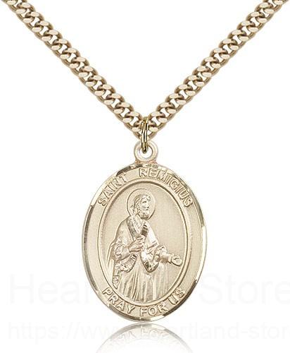 This St. Remigius of Reims Pendant is made of gold filled and is approximately the size of a quarter. The jewelry pendant is paired with a 24 inch gold filled heavy curb chain as pictured. All medals are gift boxed in a beautiful blue velvet hinged jewelry gift box.