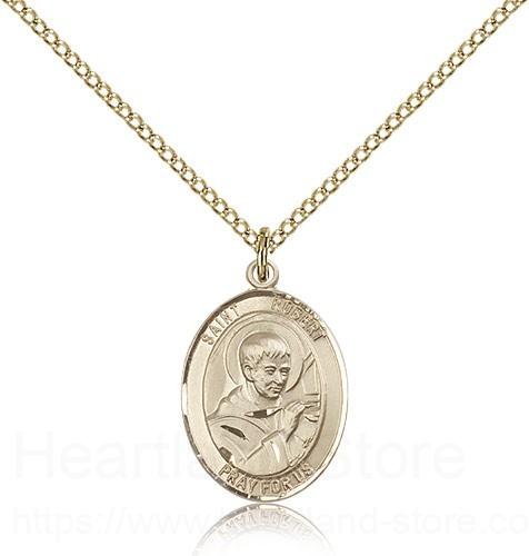 This St. Robert Bellarmine Pendant is made of gold filled and is approximately the size of a nickel. The jewelry pendant is paired with an 18 inch gold filled light curb chain as pictured. All medals are gift boxed in a beautiful blue velvet hinged jewelry gift box.