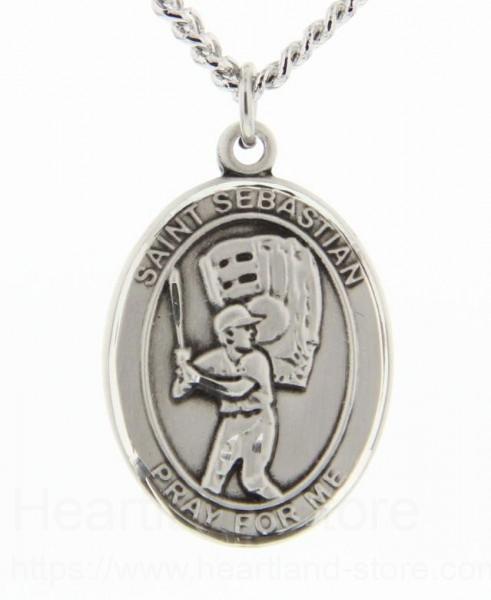 About this St. Sebastian Baseball Medal, Sterling Silver, Large + 24" 2.4mm Rhodium Plate Chain + Clasp