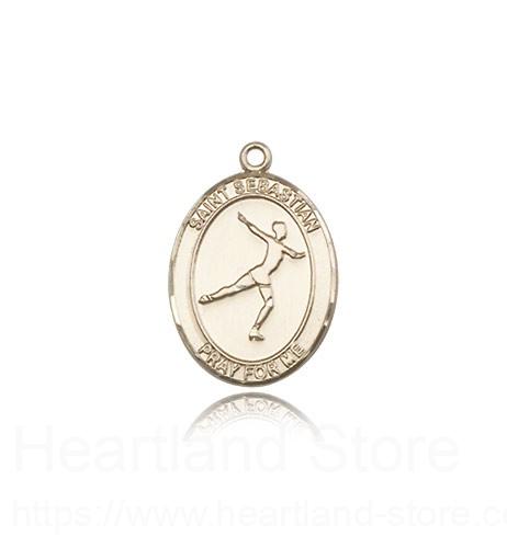 This St. Sebastian Figure Skating Pendant is made of 14 Karat Gold and is approximately the size of a nickel. The jewelry pendant is sold individually and does not come with a chain. All medals are gift boxed in a beautiful blue velvet hinged jewelry gift box.