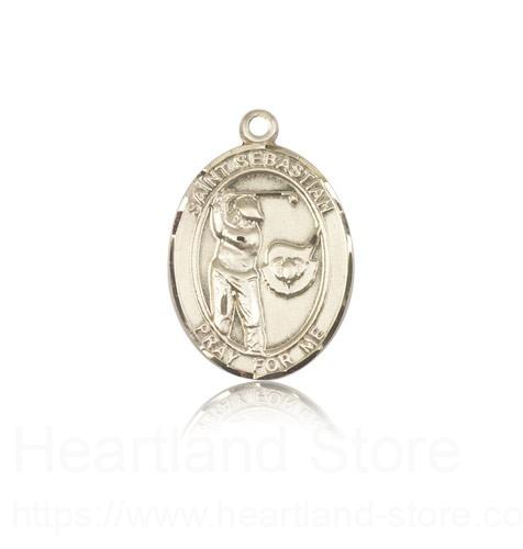 This St. Sebastian Golf Pendant is made of 14 Karat Gold and is approximately the size of a nickel. The jewelry pendant is sold individually and does not come with a chain. All medals are gift boxed in a beautiful blue velvet hinged jewelry gift box.