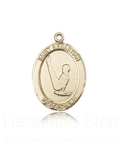 This St. Sebastian Gymnastics Pendant is made of 14 Karat Gold and is approximately the size of a quarter. The jewelry pendant is sold individually and does not come with a chain. All medals are gift boxed in a beautiful blue velvet hinged jewelry gift box.