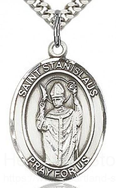 About this St. Stanislaus Medal, Sterling Silver, Large + 24" 2.4mm Rhodium Plate Chain + Clasp