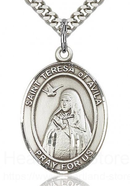 About this St. Teresa of Avila Medal, Sterling Silver, Large + 24" 2.4mm Rhodium Plate Chain + Clasp