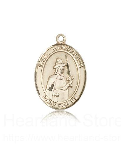 This St. Wenceslaus Pendant is made of 14 Karat Gold and is approximately the size of a quarter. The jewelry pendant is sold individually and does not come with a chain. All medals are gift boxed in a beautiful blue velvet hinged jewelry gift box.
