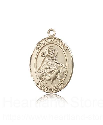 This St. William of Rochester Pendant is made of 14 Karat Gold and is approximately the size of a quarter. The jewelry pendant is sold individually and does not come with a chain. All medals are gift boxed in a beautiful blue velvet hinged jewelry gift box.