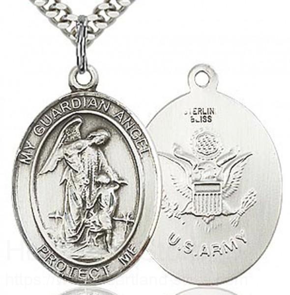About this Guardian Angel Army Medal, Sterling Silver, Large + 24" 2.4mm Rhodium Plate Endless Chain