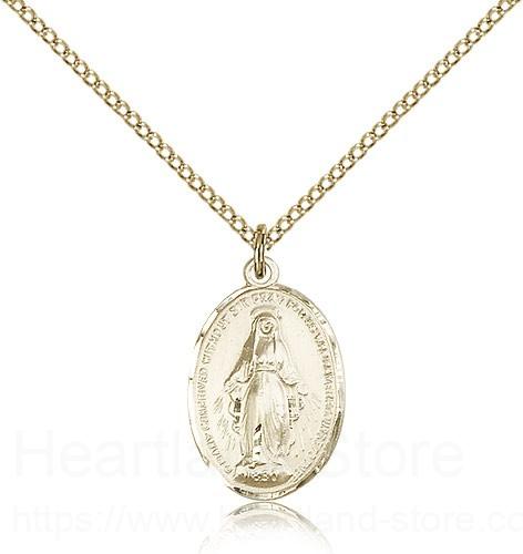 This Miraculous Medal is paired with an 18" gold filled light curb chain as pictured. All medals are gift boxed in a light blue velvet gift box ready for gift giving.