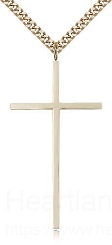 This Cross Pendant is paired with a 24 inch stainless steel gold-tone heavy curb chain as pictured. All medals are gift boxed in a light blue velvet jewelry box ready for gift giving.