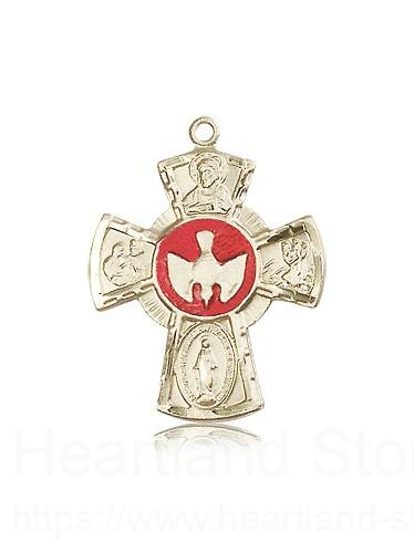 This 5 Way Cross Pendant is made of 14 Karat Gold. The jewelry pendant is sold as pictured and does not come with a chain. All medals are gift boxed in a light blue velvet jewelry box ready for gift giving.