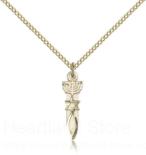 This Menorah Star Fish Medal is paired with an 18" gold filled light curb chain as pictured. All medals are gift boxed in a light blue velvet gift box ready for gift giving.