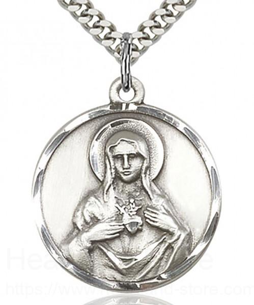 About this Immaculate Heart of Mary Medal, Sterling Silver + 24" 2.4mm Rhodium Plate Endless Chain