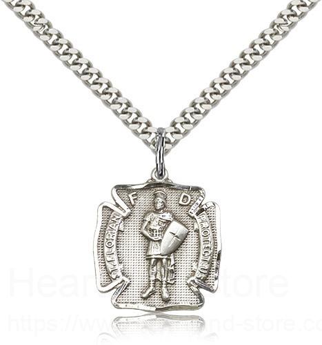 This St. Florian Medal is paired with a 24 inch stainless steel heavy curb chain as pictured. All medals are gift boxed in a light blue velvet jewelry box ready for gift giving.