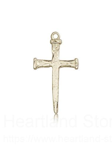 This Nail Cross Pendant is made of 14 Karat Gold. The jewelry pendant is sold as pictured and does not come with a chain. All medals are gift boxed in a light blue velvet jewelry box ready for gift giving.