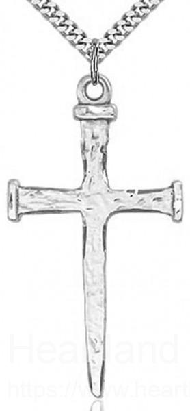 About this Large Nail Cross Pendant, Sterling Silver + 24" 2.4mm Rhodium Plate Endless Chain