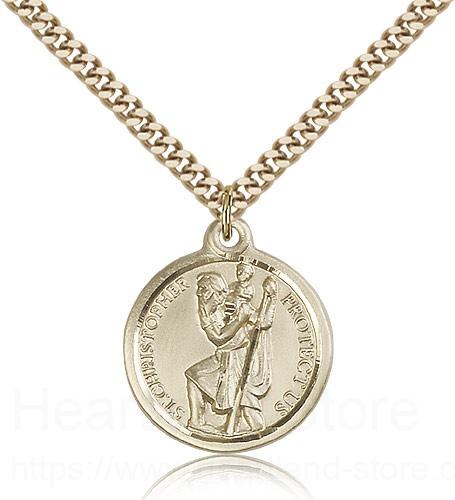 This St. Christopher Medal is paired with a 24 inch stainless steel gold-tone heavy curb chain as pictured. All medals are gift boxed in a light blue velvet jewelry box ready for gift giving.