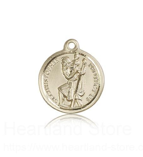 This St. Christopher Medal is made of 14 Karat Gold. The jewelry pendant is sold as pictured and does not come with a chain. All medals are gift boxed in a light blue velvet jewelry box ready for gift giving.
