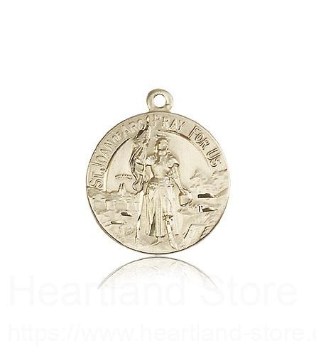 This St. Joan of Arc Medal is made of 14 Karat Gold. The jewelry pendant is sold as pictured and does not come with a chain. All medals are gift boxed in a light blue velvet jewelry box ready for gift giving.