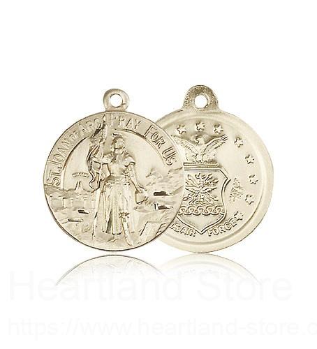 This St. Joan of Arc Air Force Medal is made of 14 Karat Gold. The jewelry pendant is sold as pictured and does not come with a chain. All medals are gift boxed in a light blue velvet jewelry box ready for gift giving.