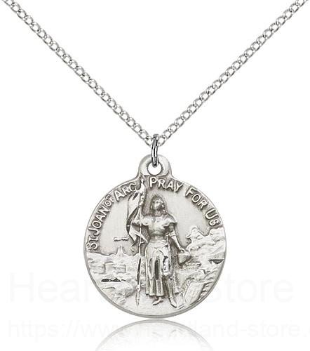 This St. Joan of Arc Medal is paired with an 18 inch sterling silver lite curb chain as pictured. All medals are gift boxed in a light blue velvet jewelry box ready for gift giving.