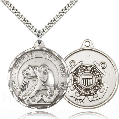 This St. Joseph Coast Guard Medal is paired with a 24 inch stainless steel heavy curb chain as pictured. All medals are gift boxed in a light blue velvet jewelry box ready for gift giving.