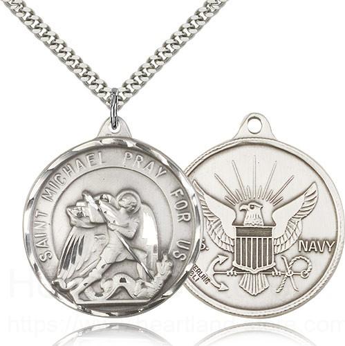 About this St. Michael Navy Medal, Sterling Silver + 24" 2.4mm Rhodium Plate Endless Chain