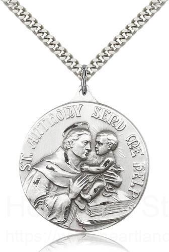 This St. Anthony Medal is paired with a 24 inch stainless steel heavy curb chain as pictured. All medals are gift boxed in a light blue velvet jewelry box ready for gift giving.