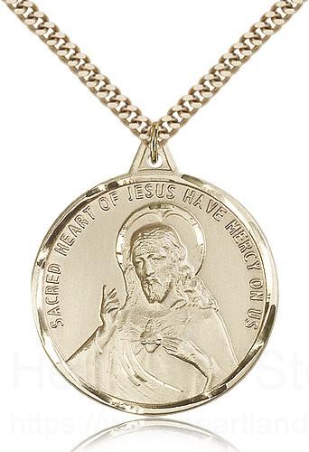 This Scapular Medal is paired with a 24 inch stainless steel gold-tone heavy curb chain as pictured. All medals are gift boxed in a light blue velvet jewelry box ready for gift giving.