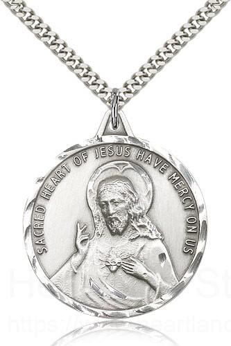 This Scapular Medal is paired with a 24 inch stainless steel heavy curb chain as pictured. All medals are gift boxed in a light blue velvet jewelry box ready for gift giving.