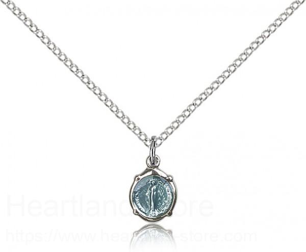 This Miraculous Medal is paired with an 18 inch sterling silver lite curb chain as pictured. All medals are gift boxed in a light blue velvet jewelry box ready for gift giving.