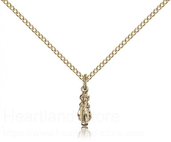 Infant Medal is paired with an 18" gold filled light curb chain as pictured. All medals are gift boxed in a light blue velvet gift box ready for gift giving.