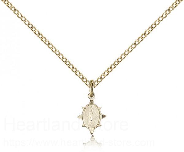 This Miraculous Medal is paired with an 18" gold filled light curb chain as pictured. All medals are gift boxed in a light blue velvet gift box ready for gift giving.