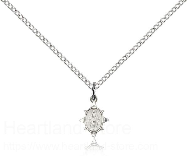 This Miraculous Medal is paired with an 18 inch sterling silver lite curb chain as pictured. All medals are gift boxed in a light blue velvet jewelry box ready for gift giving.