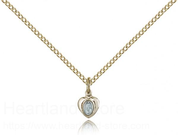 This Gold Plated Sterling Silver Miraculous Medal is paired with an 18" gold filled light curb chain as pictured. All medals are gift boxed in a light blue velvet gift box ready for gift giving.