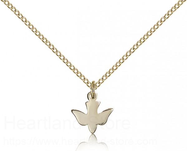 This Holy Spirit Medal is paired with an 18" gold filled light curb chain as pictured. All medals are gift boxed in a light blue velvet gift box ready for gift giving.