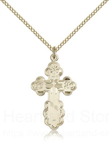 This St. Olga Cross Pendant is paired with an 18" gold filled light curb chain as pictured. All medals are gift boxed in a light blue velvet gift box ready for gift giving.