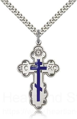This St. Olga Cross Pendant is paired with a 24 inch stainless steel heavy curb chain as pictured. All medals are gift boxed in a light blue velvet jewelry box ready for gift giving.