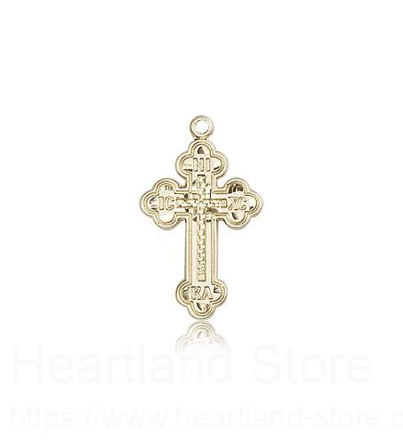 This Russian Cross Pendant is made of 14 Karat Gold. The jewelry pendant is sold as pictured and does not come with a chain. All medals are gift boxed in a light blue velvet jewelry box ready for gift giving.