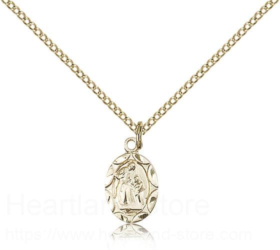 This St. Ann Medal is paired with an 18" gold filled light curb chain as pictured. All medals are gift boxed in a light blue velvet gift box ready for gift giving.