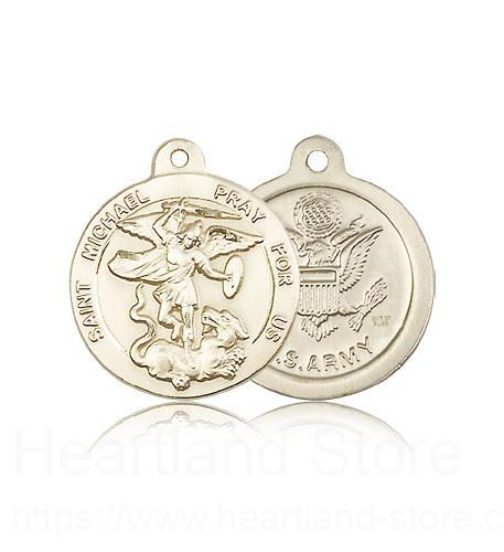 This St. Michael Army Medal is made of 14 Karat Gold. The jewelry pendant is sold as pictured and does not come with a chain. All medals are gift boxed in a light blue velvet jewelry box ready for gift giving.