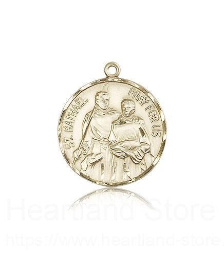 This St. Raphael Medal is made of 14 Karat Gold. The jewelry pendant is sold as pictured and does not come with a chain. All medals are gift boxed in a light blue velvet jewelry box ready for gift giving.